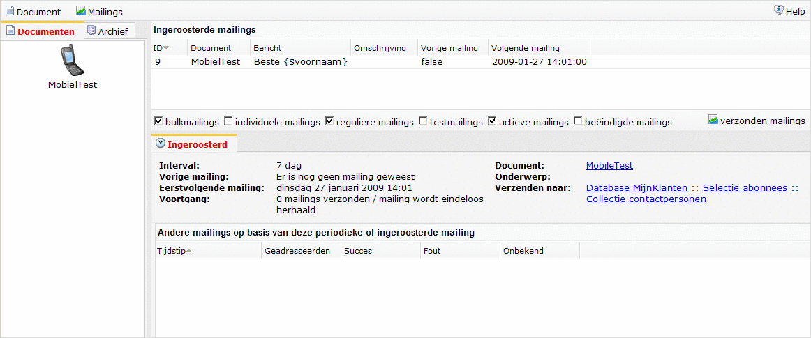 Zet uw mailing nu klaar en verzend later of met een herhaling.